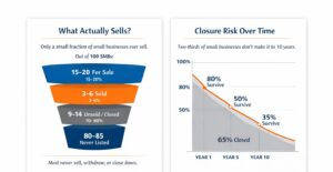 Research from M&A and brokerage sources paints a stark picture of the SMB exit landscape: